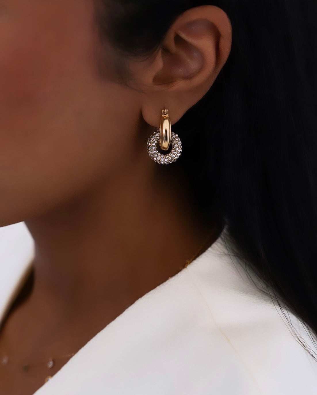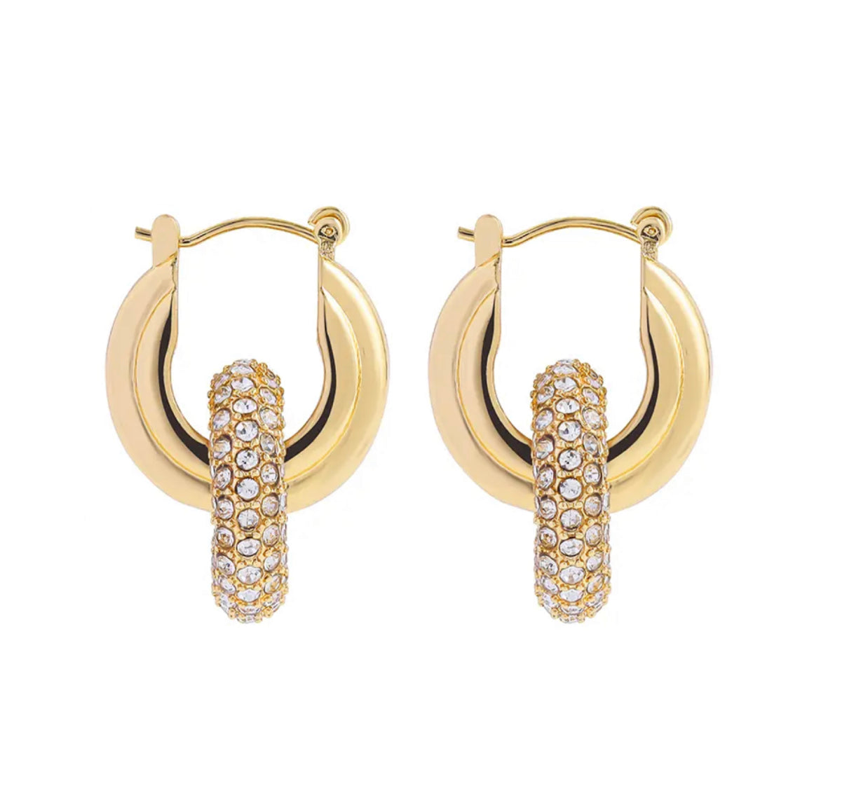Gold hoops with an inner ring encrusted with sparkling crystals